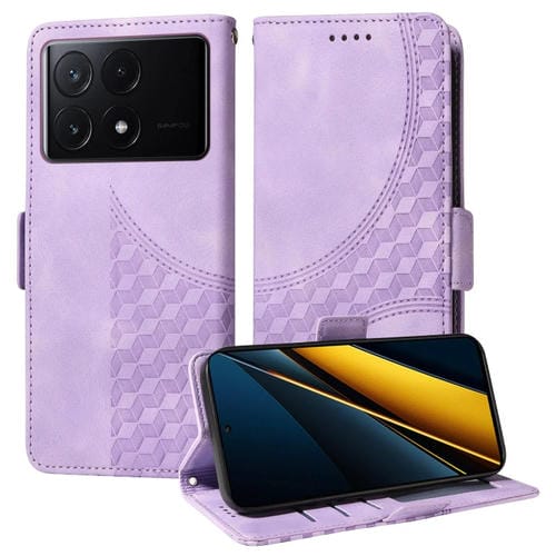 Para Xiaomi Poco X6 Pro Funda de Teléfono de Cuero Estrellado con Rombos En Relieve (Púrpura)