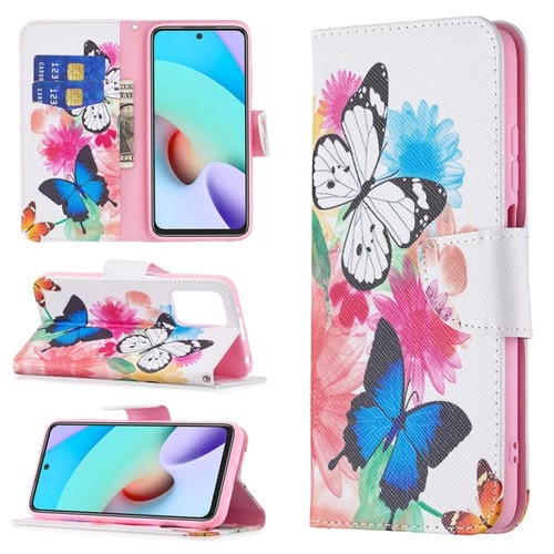 Para Xiaomi Redmi 10 Patrón de Dibujo de Color Flip Horizontal Funda de Cuero con Soporte y Tragamonedas y Billetera (Mariposas)