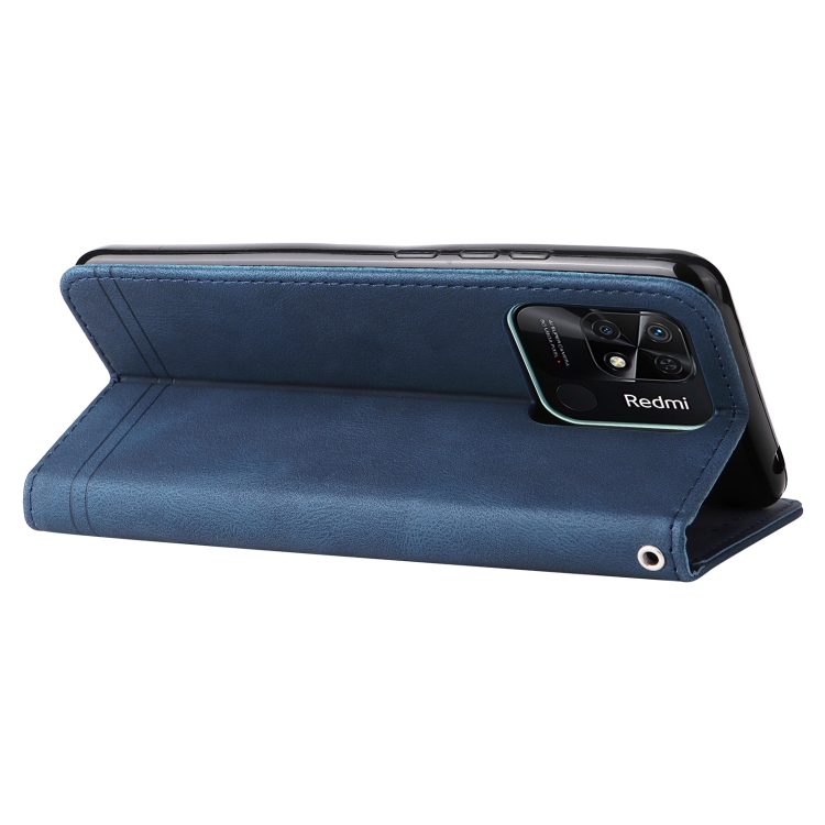 Para Xiaomi Redmi 10C 4G / REDMI 10 INDIAN VERSION SOINT SOINT WE LIFE TRANSE METAL BOTÓN TELEO DE CUERO Caja (azul)