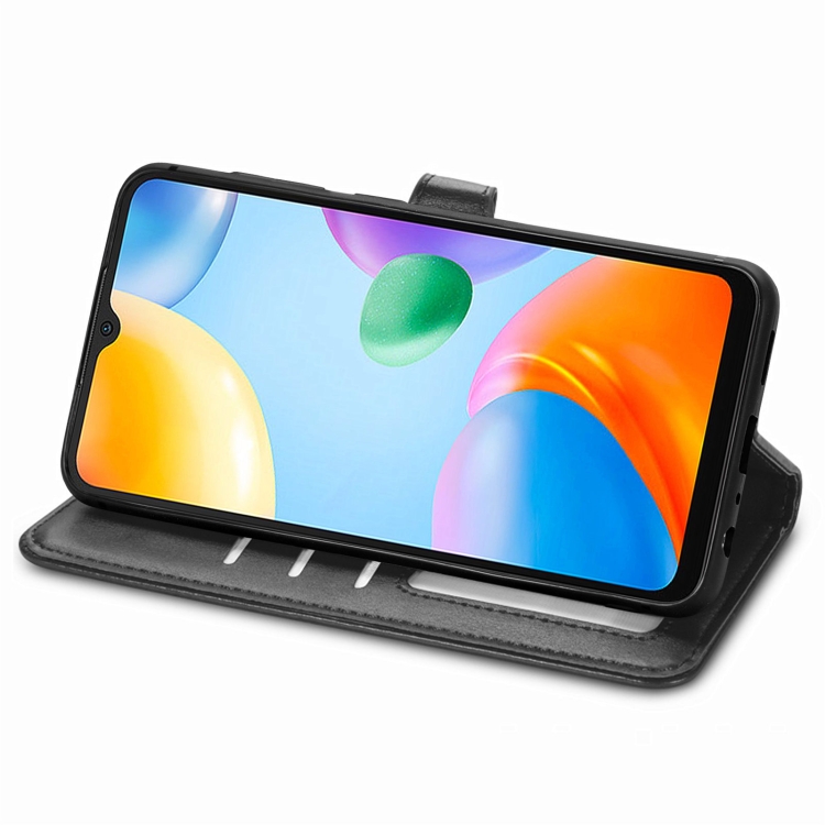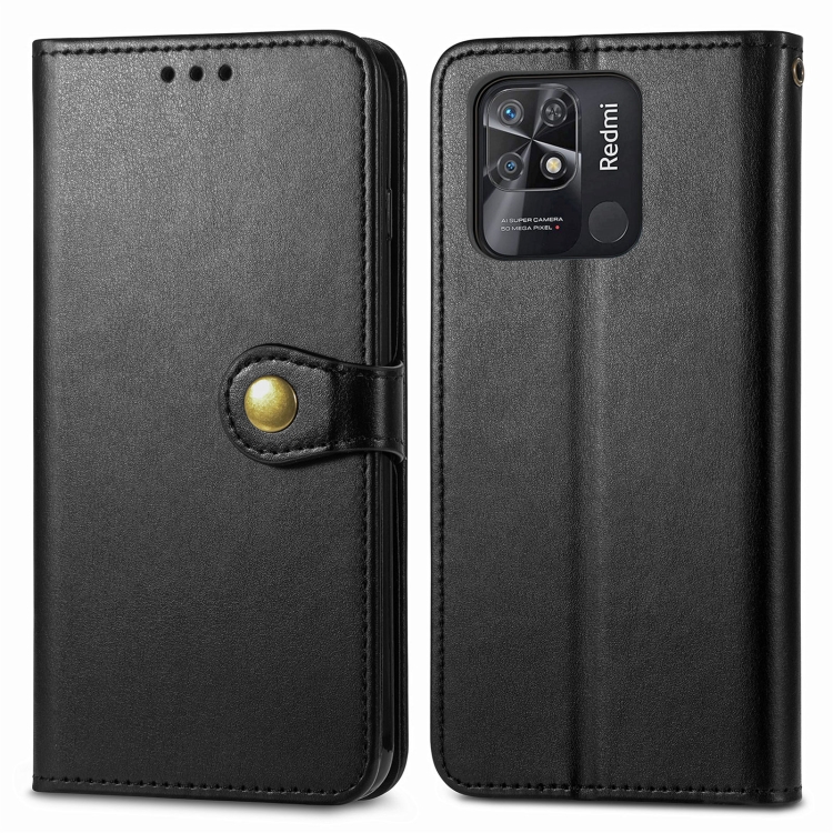 Para Xiaomi Redmi 10c Retro Color Sólido Hebilla Caja de cuero (Negro)