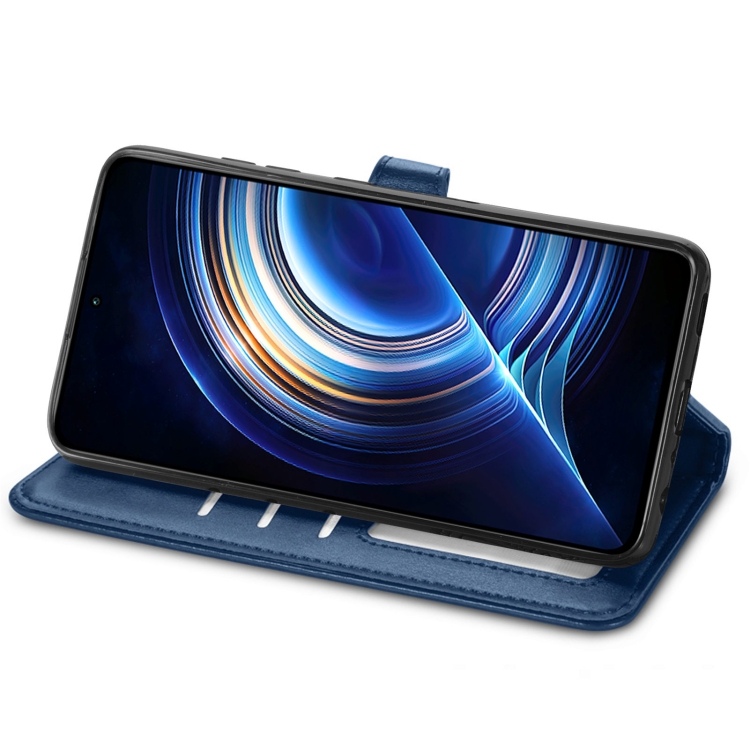 Para Xiaomi Redmi K50 Pro Retro Color Sólido Hebilla de cuero funda telefónica (azul)
