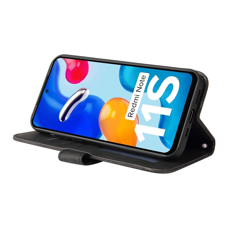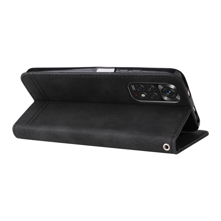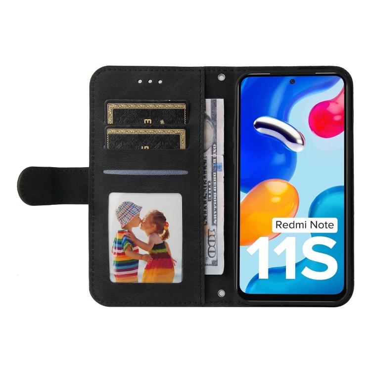Para Xiaomi Redmi Note 11 4G (Global) / Redmi Note 11s 4g (Global) Siente la piel Tree Tree Metal Button Horizontal Flip Funda de cuero (negro)