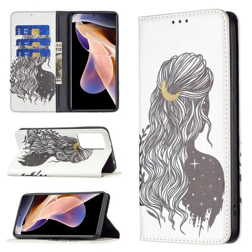 Pour Xiaomi Redmi Note 11 Pro/11 Pro + Motif de dessin coloré Étui de téléphone en cuir PU magnétique invisible (Fille)