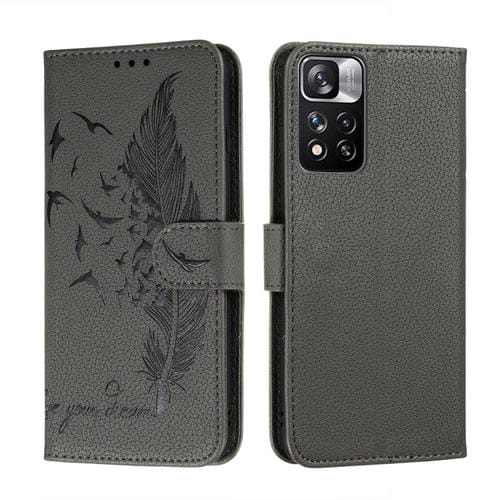 Para Xiaomi Redmi Note 11 Pro Patrón de Plumas Litchi Texture Telegle Teléfono de Cuero con Soporte y Tragamonedas y Billetera (Gris)