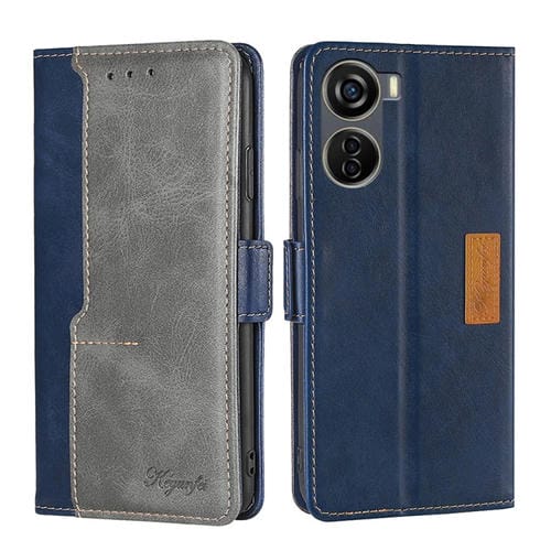 Funda de Cuero para ZTE Axon 40 Lite con Hebilla Lateral (Azul + Gris)
