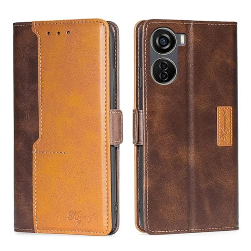 Funda de Cuero para ZTE Axon 40 Lite con Hebilla Lateral (Marrón Oscuro + Dorado)