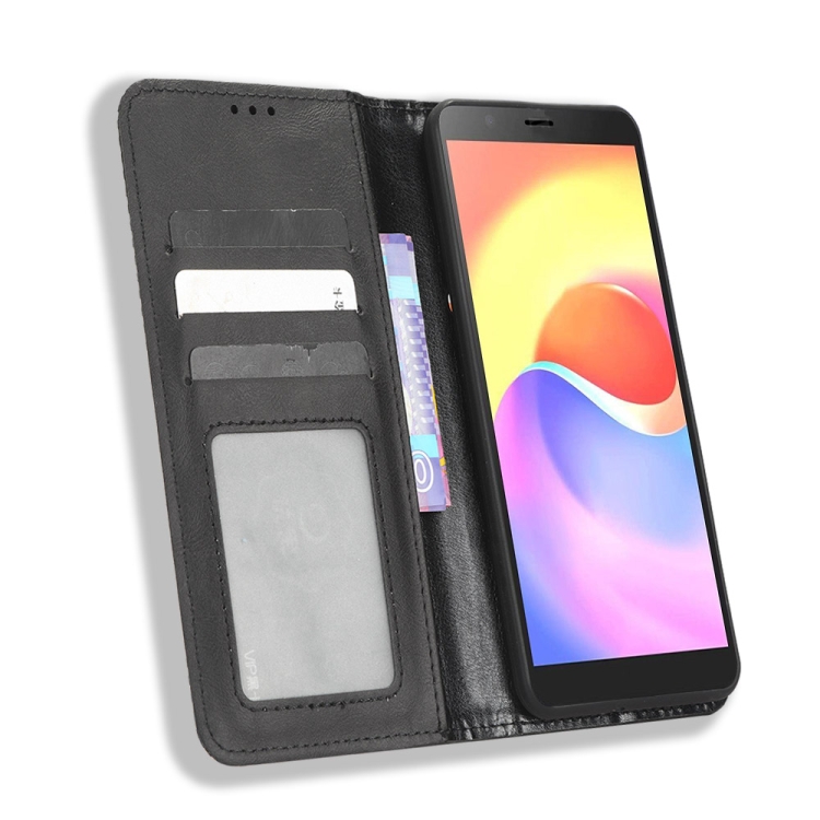 Funda de Cuero para ZTE Blade A32 con Hebilla Magnética y Textura Retro (Negro)
