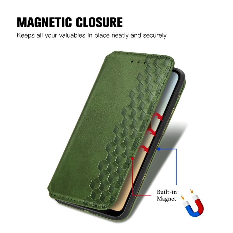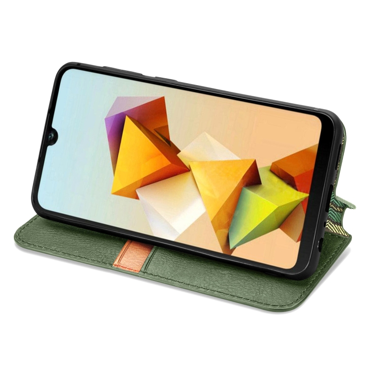 Funda de Teléfono ZTE Blade A33S Cuero Magnético Prensado (Verde)