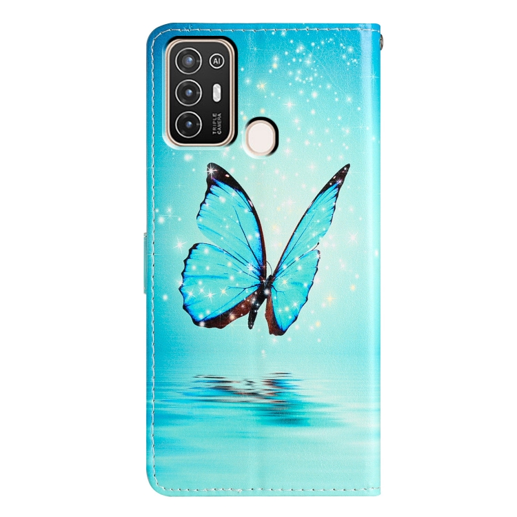 Funda de Cuero para ZTE Blade A52 con Dibujo Coloreado (Mariposa Azul)