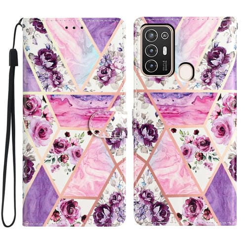 Funda de Cuero para ZTE Blade A52 con Dibujo Coloreado Mármol (Púrpura)