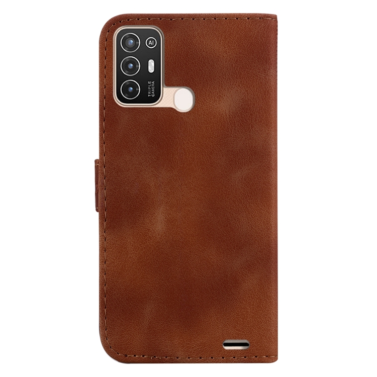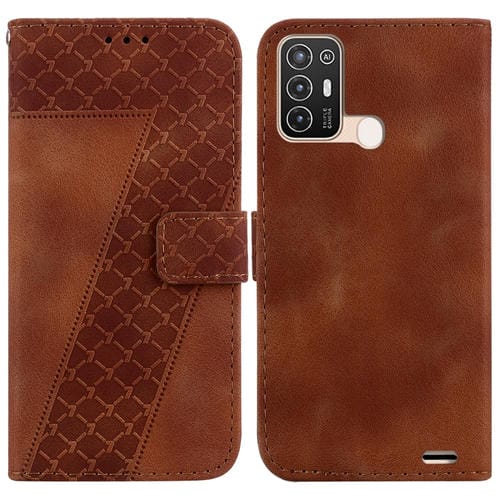 Funda de Cuero En Relieve en Forma de 7 para ZTE Blade A52 (Marrón)