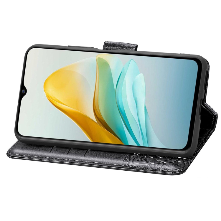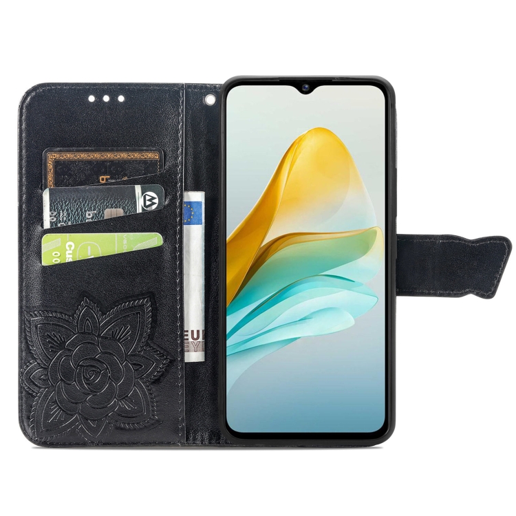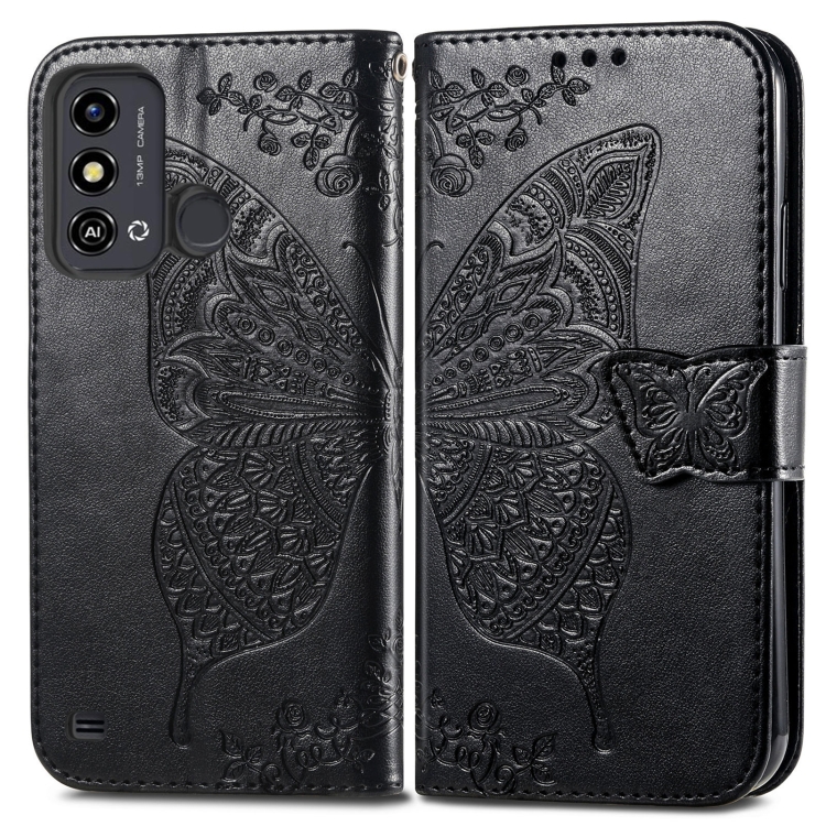 Funda para ZTE Blade A53 Butterfly Love Flower Caja de Teléfono Cuero En Relieve (Negro)