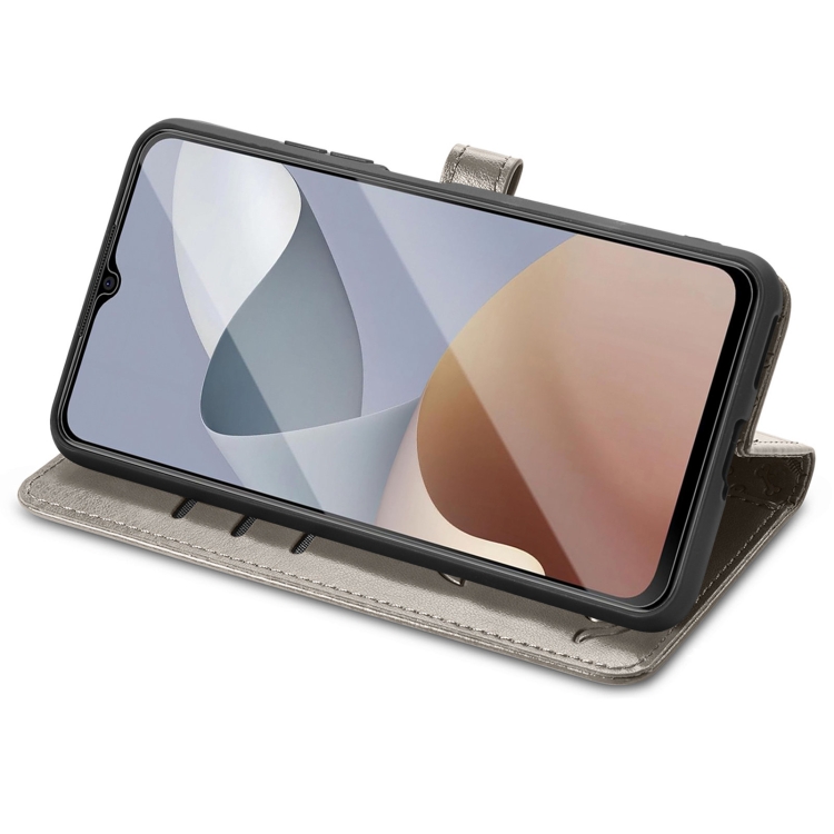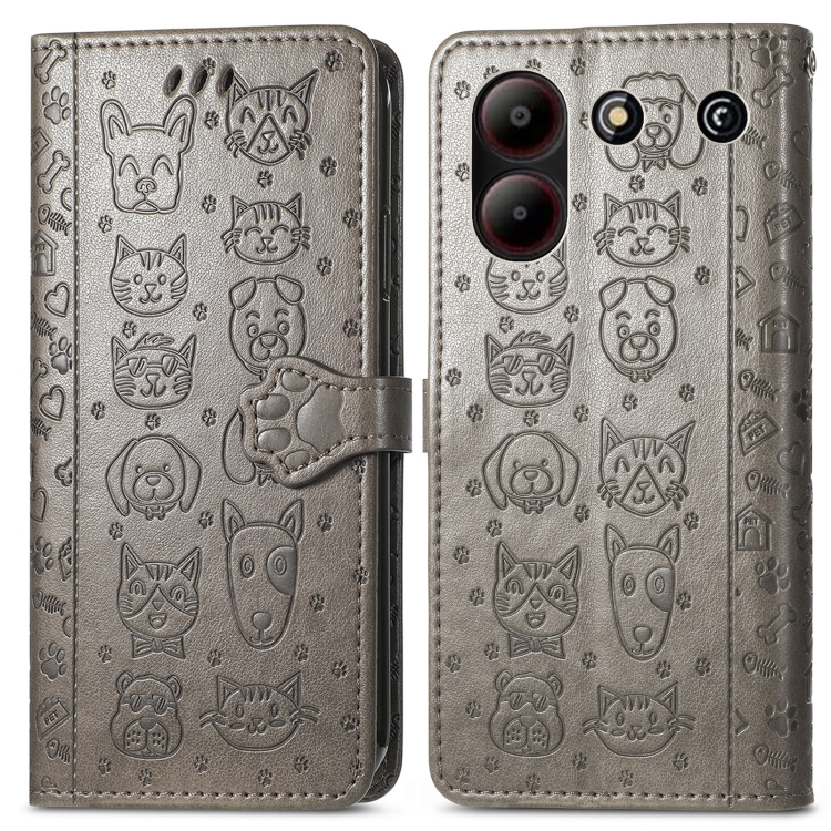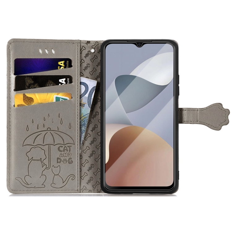 Funda para ZTE Blade A54 de Cuero con Relieve de Gato y Perro (Gris)