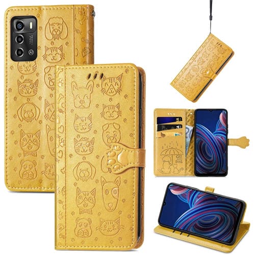 Estuche de Cuero para ZTE Blade A72 4G con Relieve Cute CAT And Dog (Amarillo)