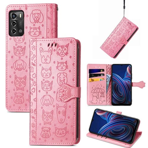 Estuche Cuero para ZTE Blade A72 4G Cute Cat and Dog en Relieve (Rosa)