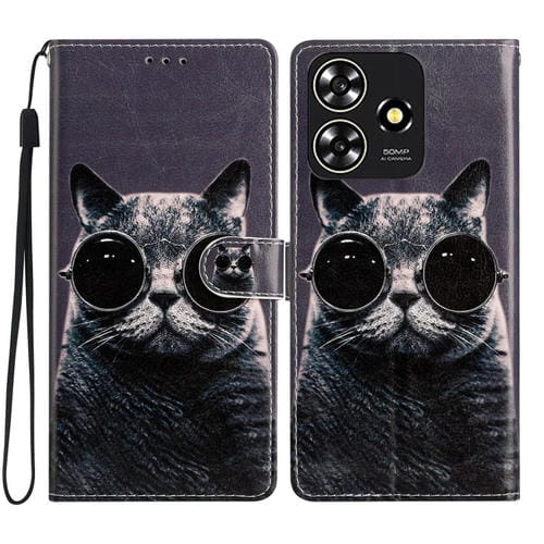 Funda de Cuero para ZTE Blade A73 4G con Dibujo Coloreado Gato de Gafas de Sol