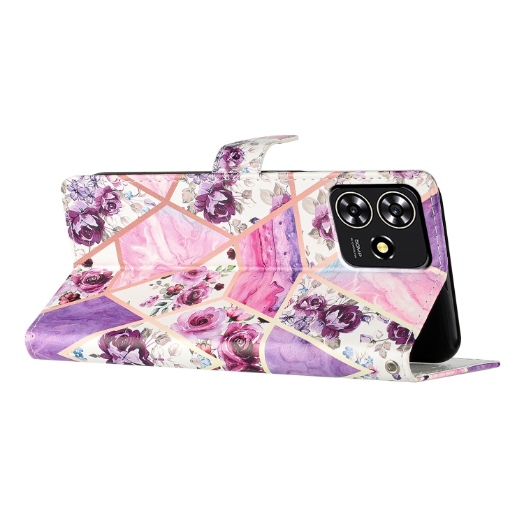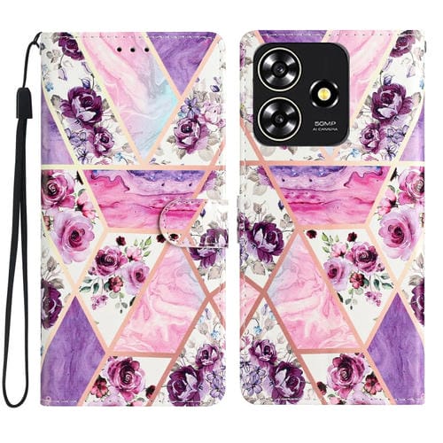 Funda de Cuero para ZTE Blade A73 4G con Dibujo Coloreado Mármol (Púrpura)
