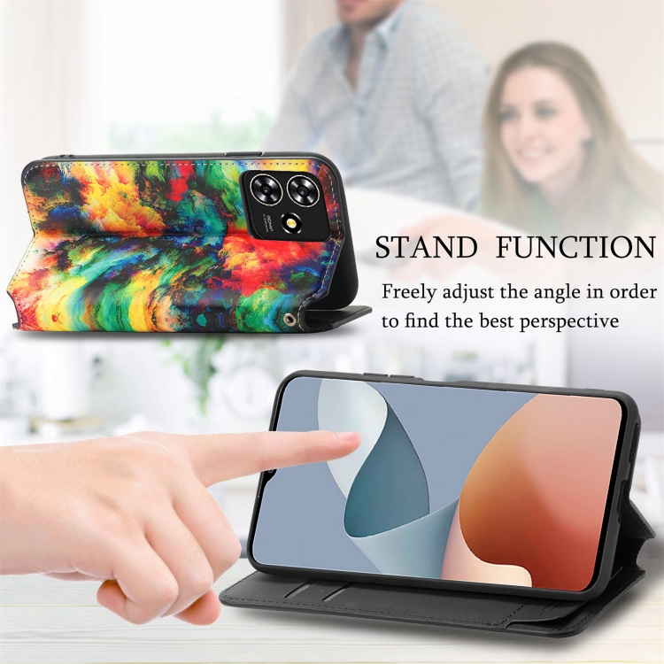 Funda de Cuero Magnética Caseneo para ZTE Blade A73 5G (Nube Colorida)