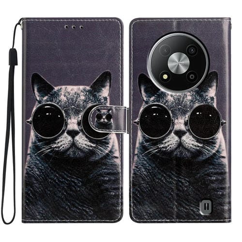 Funda de Cuero para ZTE Blade A73 5G con Dibujo Coloreado Gato de Gafas de Sol