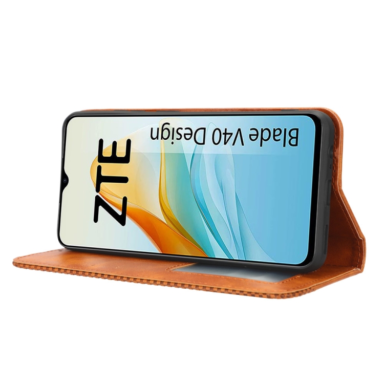 Funda para ZTE Blade V40 con Hebilla Magnética y Textura Retro de Cuero (Marrón)