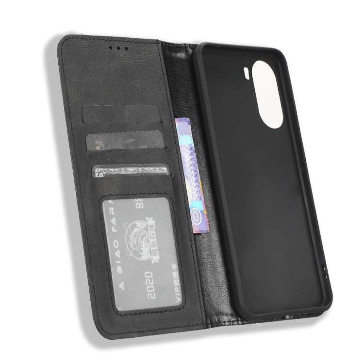 Funda de Cuero para ZTE Blade V40 con Hebilla Magnética y Textura Retro (Negro)