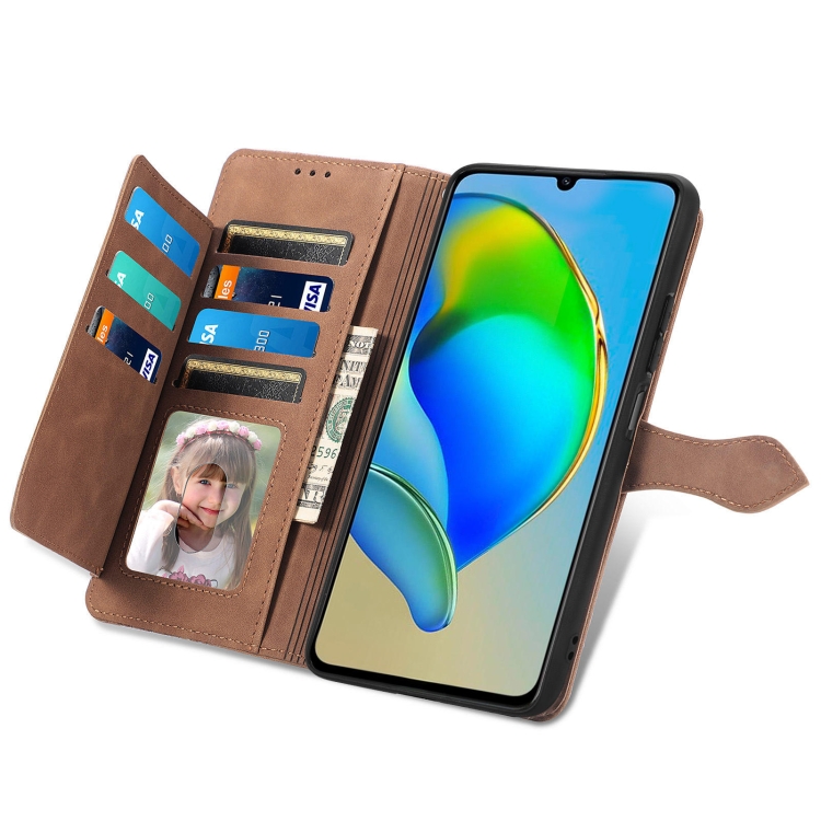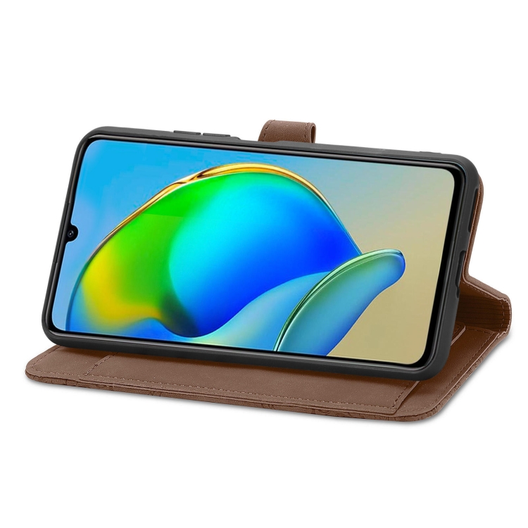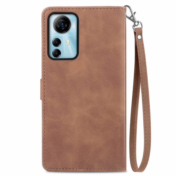 Funda de Cuero para ZTE Blade V41 con Cremallera y Flor en Relieve (Marrón)