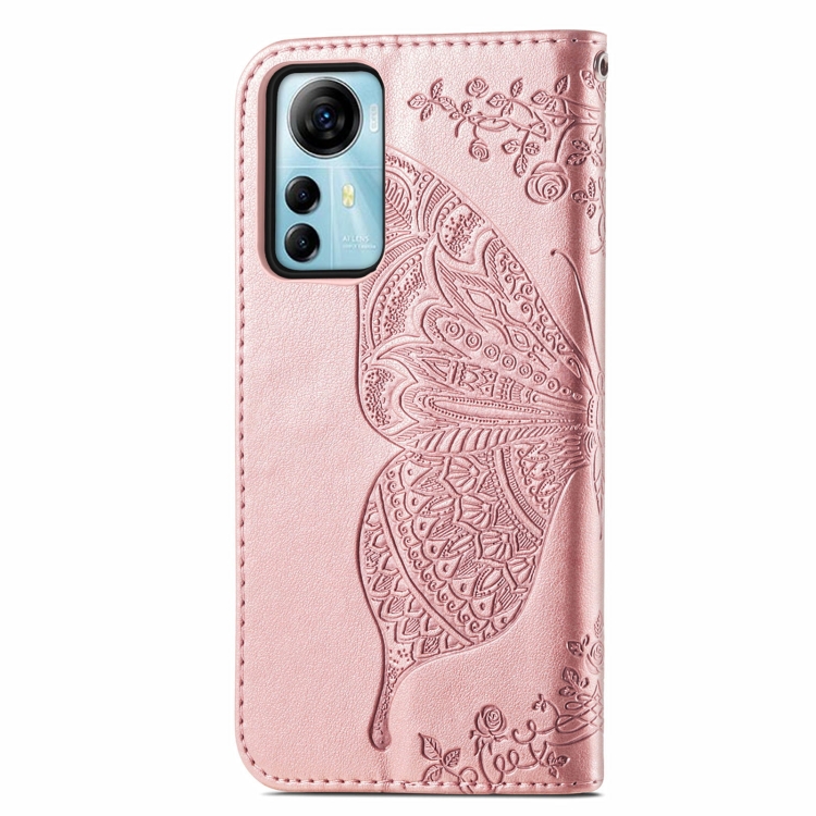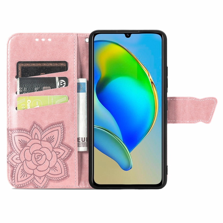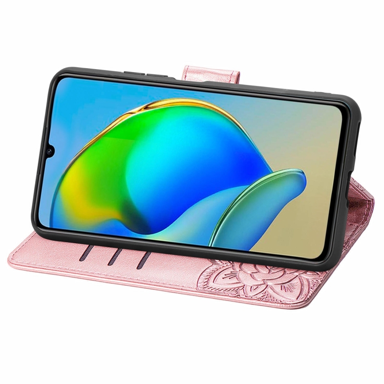 Funda de Cuero para ZTE Blade V41 Smart con Diseño Butterfly Love Flower en Relieve (Oro Rosa)