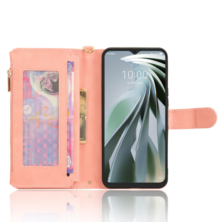 Funda de Cuero con Cremallera para ZTE Libero 5G Ⅳ Textura Litchi (Rosa)