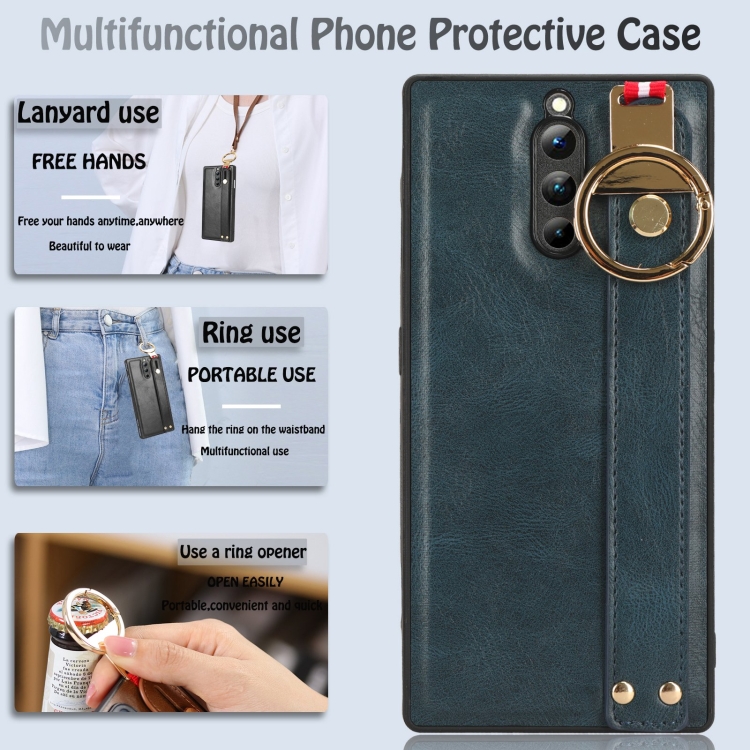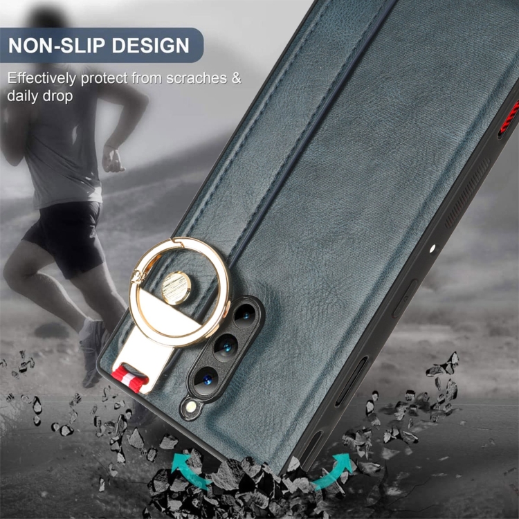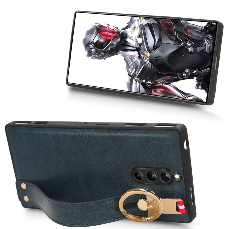 Funda de Cuero + Muñequera para ZTE Nubia Red Magic 8 Pro (Azul)