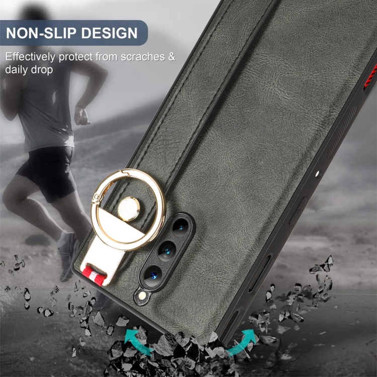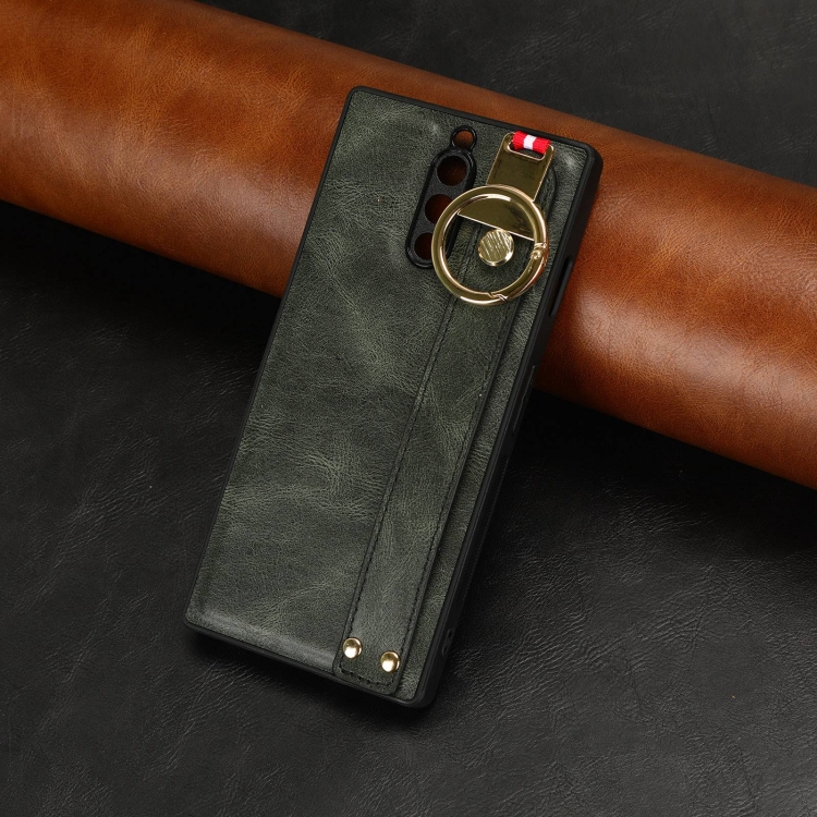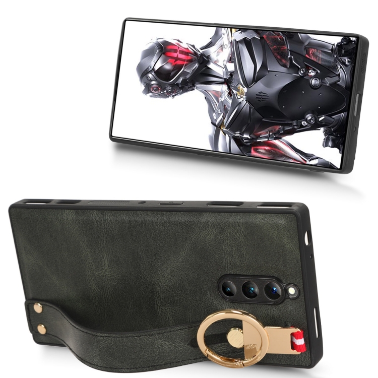 Funda de Cuero + Muñequera para ZTE Nubia Red Magic 8 Pro (Verde)