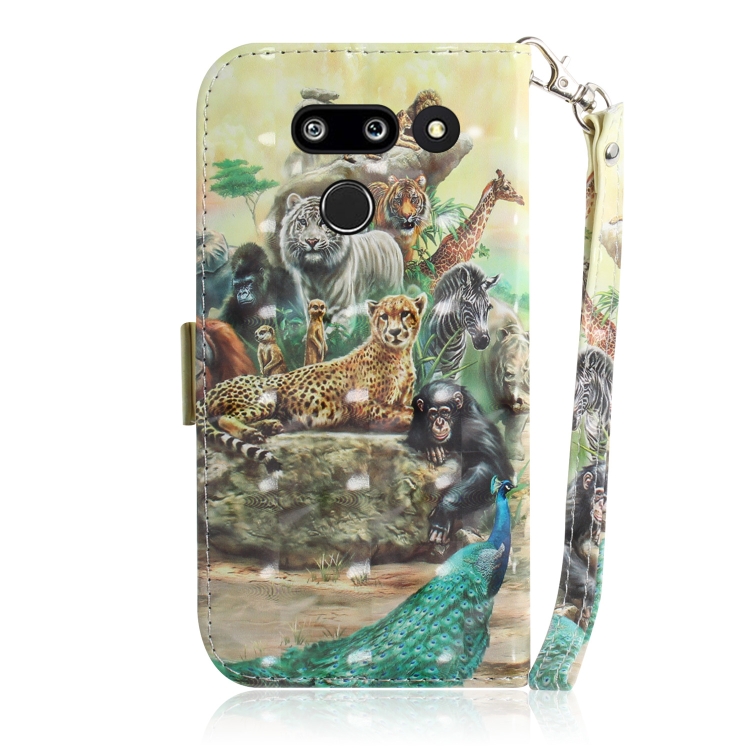 Funda de Cuero con Patrón 3D para LG G8 Thinq, Tapa Horizontal, Soporte, Ranuras y Billetera (Zoo)