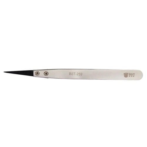 Las pinzas BEST BST-259 son una herramienta especializada diseñada para usuarios que reparan por cuenta propia y técnicos que requieren manipular componentes electrónicos sensibles sin riesgo de daños por electricidad estática. Fabricadas en acero inoxidable, estas pinzas antiestáticas ofrecen resistencia a ambientes ácidos, alcalinos y de alta temperatura, garantizando durabilidad y funcionalidad en condiciones exigentes. Su mango de acero inoxidable proporciona un agarre cómodo y seguro, mientras que su superficie cuenta con un revestimiento especial que evita la corrosión y facilita un manejo suave. Compatibles especialmente con dispositivos de la marca Acer, estas pinzas son ideales para la manipulación precisa de Piezas pequeñas en procesos de reparación y mantenimiento electrónico.