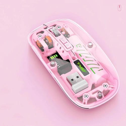 Ratón inalámbrico transparente T-WOLF X11, modo dual, 2.4G + Bluetooth, recargable por USB-C con tapa magnética (rosa)
