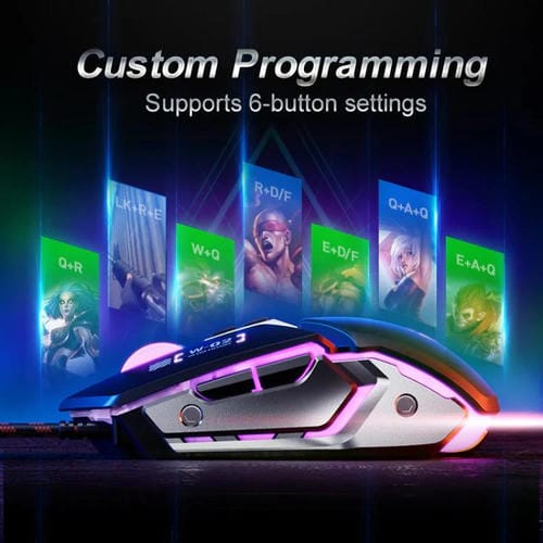 Ratón USB con cable Inphic W-02 para juegos, con iluminación y macroprogramación (gris)