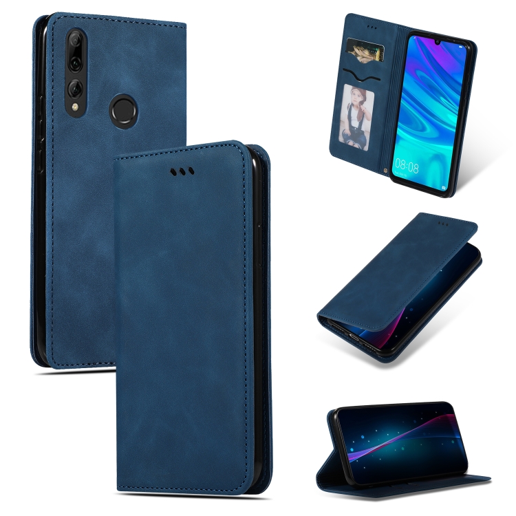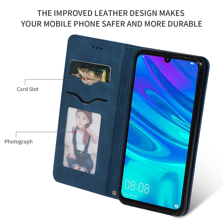 Funda Flip Horizontal Magnética Retro Skin Feel para Huawei P Smart 2019 y P Smart Plus 2019 (Azul Marino)