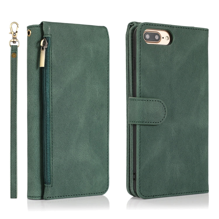 Funda de Cuero Skin-Feel Crazy Horse Texture Zipper Wallet Bag para iPhone 6 Plus con Tapa Horizontal Soporte Ranuras y Cordón (Verde Oscuro)