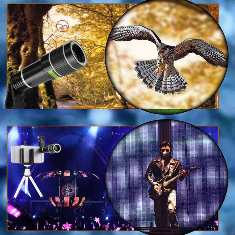 -Trípode 20X+: Telescopio x 1, Clip universal x 1, Trípode x 1, Paño de limpieza de lentes x 1
