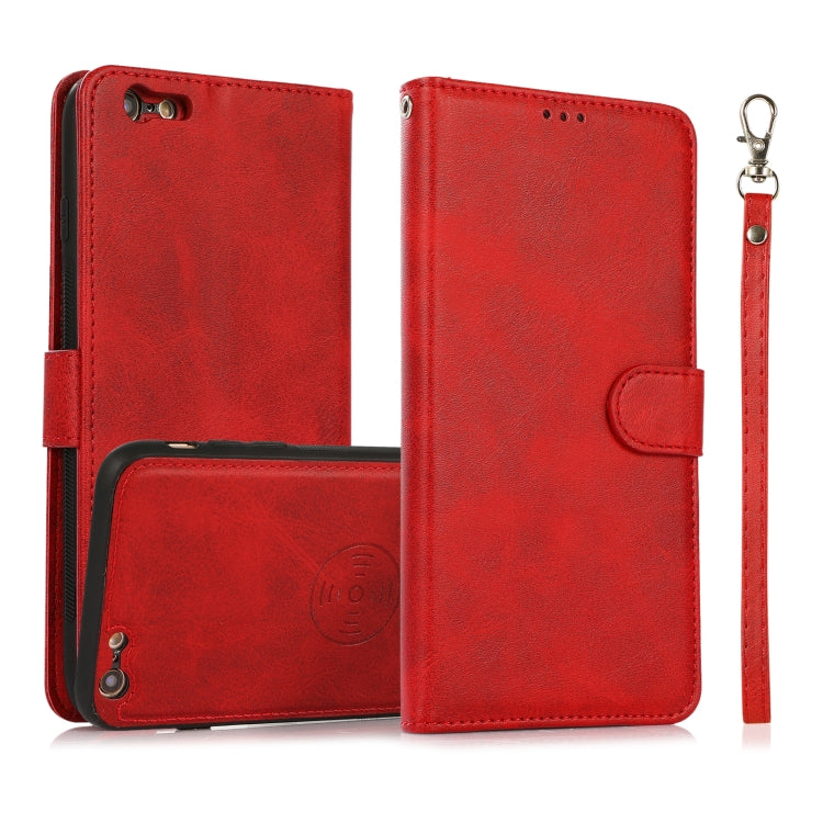 Funda de Cuero 2 en 1 para iPhone 6S / 6 Textura Pantorrilla Cubierta Magnética Desmontable Flip Horizontal con Soporte Tragamonedas Billetera y Marco de Fotos (Rojo)