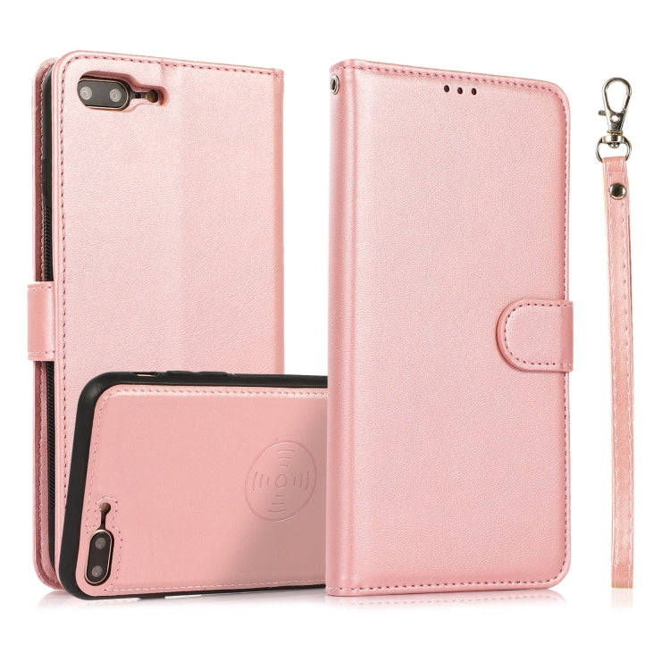 Funda de Cuero 2 En 1 Textura de Pantorrilla para iPhone 8 Plus / 7 Plus con Soporte, Billetera y Marco de Fotos (Oro Rosa)
