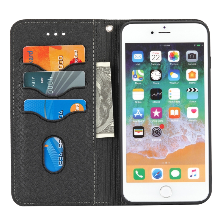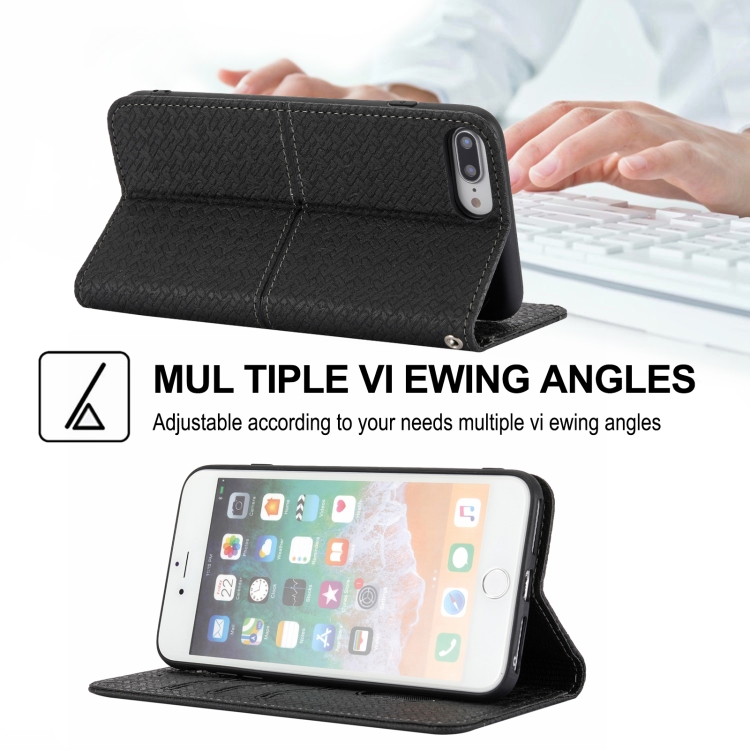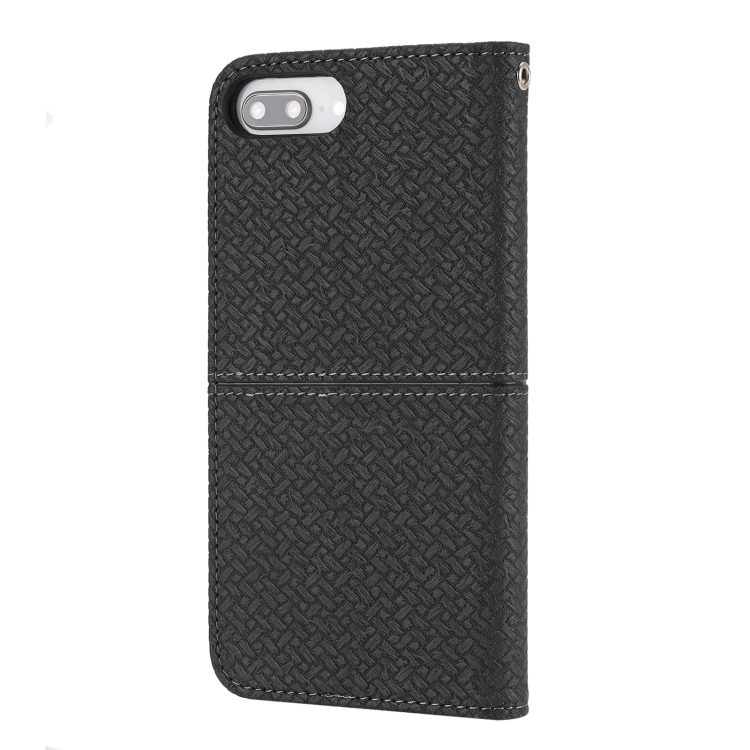 Funda de Cuero PU Textura Tejida Costura Magnética Horizontal Flip con Soporte y Ranuras para Tarjetas y Billetera para iPhone 8 Plus / 7 Plus (Negro)