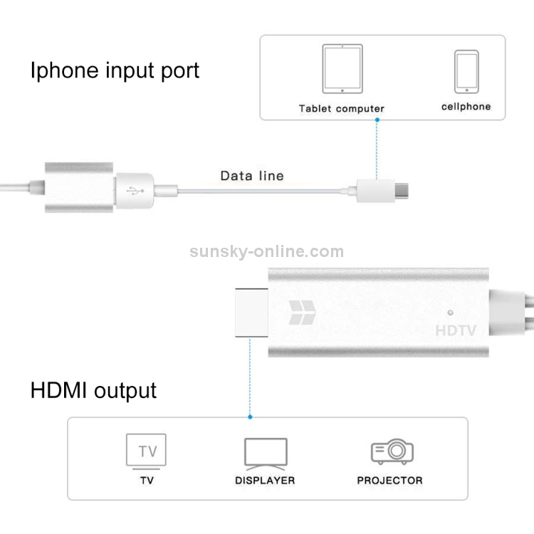 1. Convertidor de video HD HDMI para Android e iOS, adecuado para letv oneplus, samsung, LG, Google Nexus, teléfono móvil huawei, etc. o contenido local de tableta o video en línea, películas, programas de televisión, música, fotos y otros más salida de navegación a su HDTVo proyector y otro dispositivo por este producto.