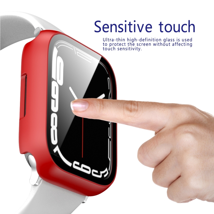PC Frame + Funda Protectora Cristal Templada Apple Watch Serie 7 41mm (Rojo)