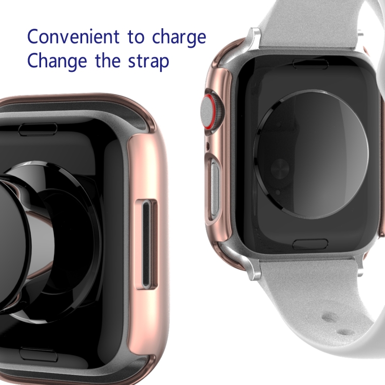 2 En 1 PC Frame + Funda Protectora de Vidrio Templado para la Serie de Relojes de Apple 7 41mm (Oro Rosa)