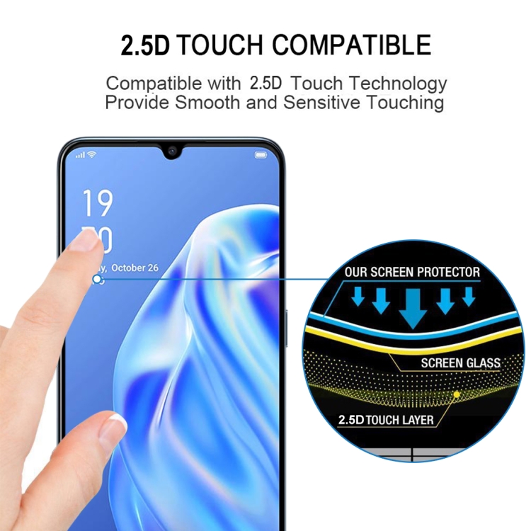 25 PCs 9H Dureza de la Superficie 2.5D Pegamento Completo Pantalla Completa Película de Vidrio Templado para Oppo F15