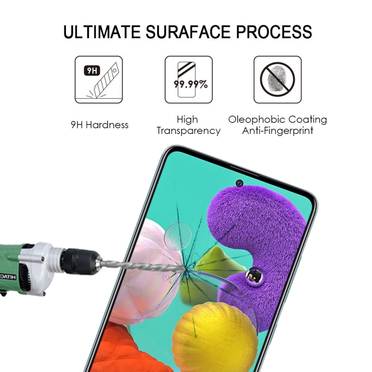Película de Vidrio Templado 9H para Galaxy A51 Pantalla Completa con Pegamento (25 PCs)