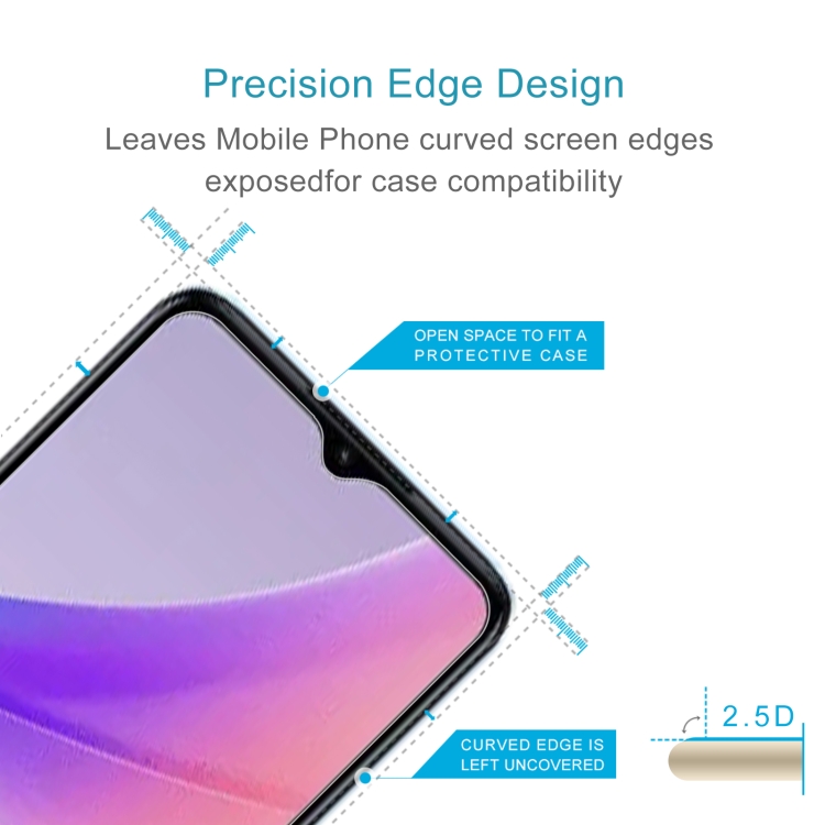 50 PCs 0.26mm 9H 2.5D Película de Vidrio Templado para Oppo A57 / A57 4G / A77 / K10 5G / A57E / A57S / K10X / A17 / A77S / A17K / A58 5G / A77 4G / A58X / A56S / A78 / A1X / A38 /A18 / Vivo Y36I / Vivo G2 / Y03 / Y28 5G
