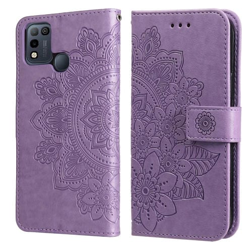 Funda de Cuero PU con Estampado 7-Petal Flores para Infinix Smart 5 Hot 10 Lite X657 (Púrpura Claro)