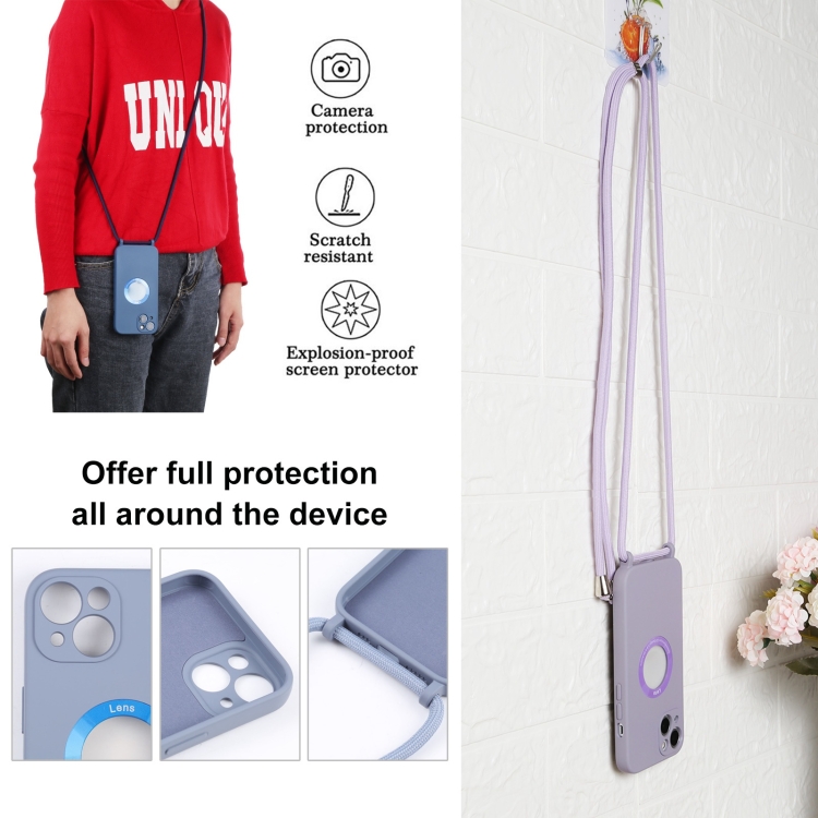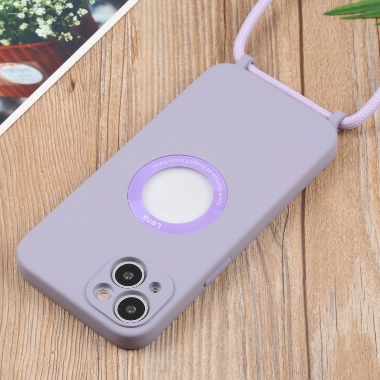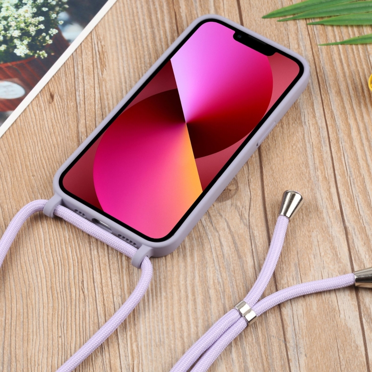 Funda Acrílico Hollow Out con Cordón para iPhone 13 Mini (Púrpura)