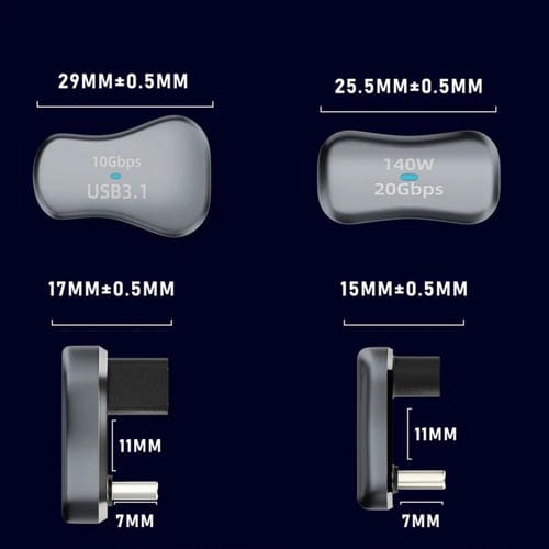 - 1x Adaptador de Carga USB-C Macho a USB-C Hembra en Forma de U de Codo 140 W y 20 Gbps