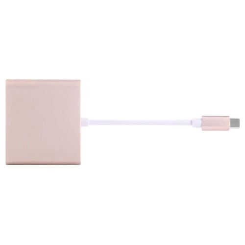 El Adaptador USB-C 3.1 Macho a USB-C 3.1 Hembra, HDMI Hembra y USB 3.0 Hembra en color Dorado es un dispositivo versátil diseñado para expandir la conectividad de equipos con Puerto USB-C. Compatible con ordenadores Portátiles como el MacBook de 12 pulgadas y Chromebook Pixel 2015, este Adaptador permite la Conexión simultánea a dispositivos USB-C Adicionales, Pantallas HDMI y periféricos USB 3.0. Su función principal es facilitar la transferencia de datos y la salida de video en alta resolución, con Soporte para una resolución máxima de 4096x2048 píxeles, ideal para usuarios que requieren ampliar las capacidades de sus equipos en entornos de trabajo, Viajes o uso cotidiano.